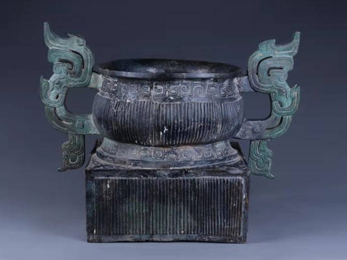 历史价值:胡簋是目前发现商周时期最大的青铜簋,盛食器,重60公斤,因其形体庞大,浑厚典雅,被誉为簋中之王。胡簋的双耳呈象首形,簋体下有正方形方座,加强了稳重感,腹围和方座上均饰直棱纹,颈部和圈足饰一周窃曲纹,上下相互对照呼应,别具一格。