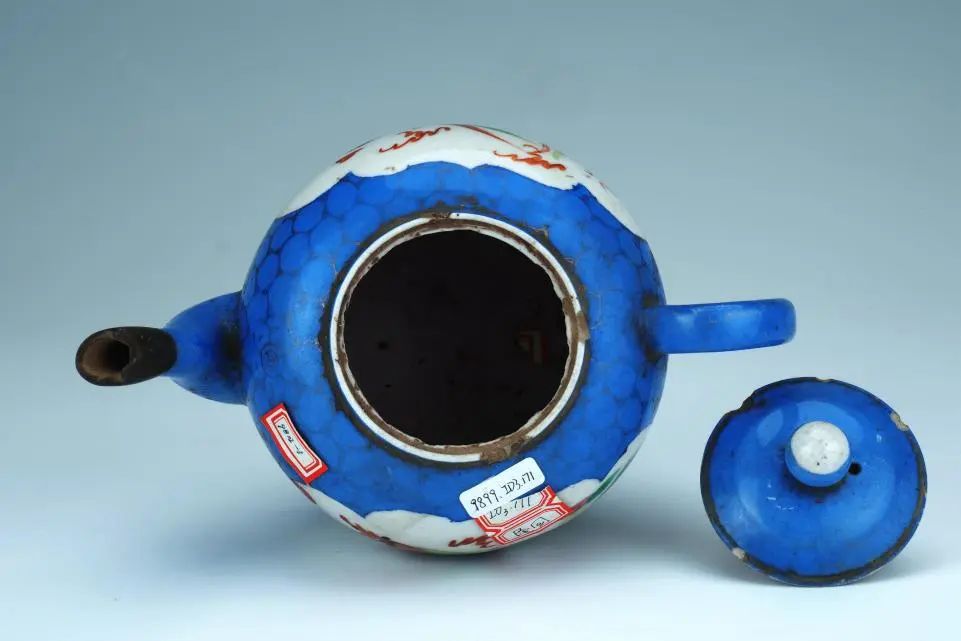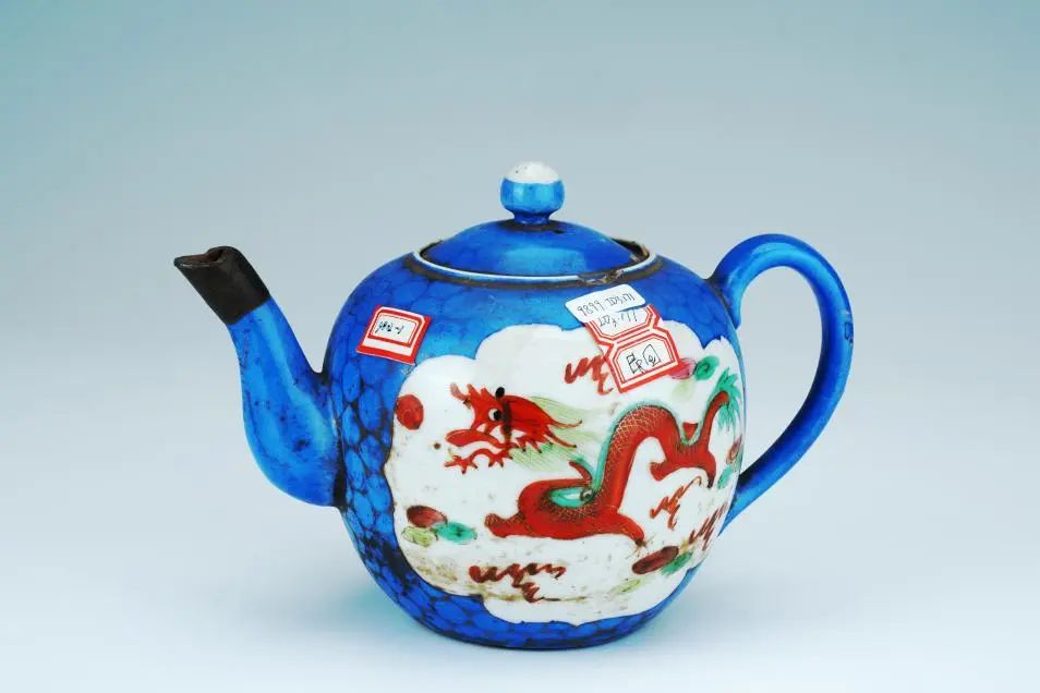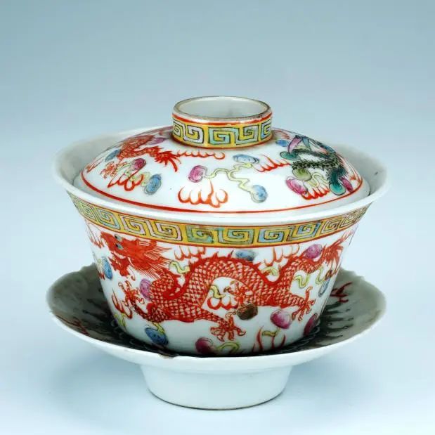 好漂亮的茶具啊,这是我们 馆藏的清“大清光绪年制”款龙凤纹茶碗和民国蓝釉龙凤纹带盖茶壶吧!