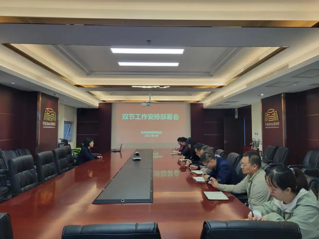 在中秋节、国庆节来临之际, 提前统筹谋划,多措并举,深入做好“双节”期间景区安全工作。9月20日,我院安排部署相关科室进行安全自查,并对检查中发现的细节性问题进行及时整改。9月26日上午,组织召开了“双节”工作安排部署会,会议由院长宁亚莹同志主持,全体中层以上领导干部参加。宁亚莹强调,要严抓安全工作,做好防汛安全检查并对院内消防、水电等设施等进行全面检查,消除安全隐患,节假日期间严格落实值班值守制度,并充实安保力量,强化安保措施,压实安保责任,确保安全无事故。要加强信息宣传,及时通过微信公众号发布节假日开放公告、停车须知等信息,保障观众参观体验,积极同媒体进行对接,大力宣传推广节假日期间各类社教活动,扩大影响力。要做好迎接“双节”氛围营造工作,进行环境卫生检查,消除卫生死角,确保园区卫生干净整洁,并做好国旗悬挂、花卉置景摆放等工作,营造浓厚的节日氛围。