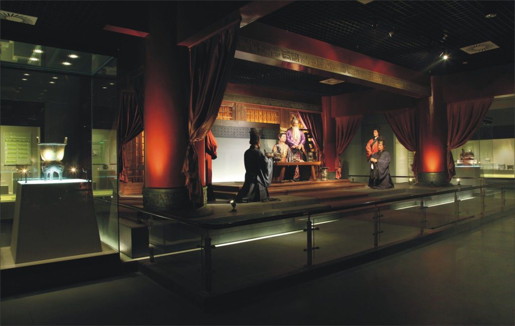 周王朝文化的核心是其礼仪制度,第二展厅以对周礼的追溯和阐释为线索,以寓意周人宗法制的青铜树为开篇,阐明宗法礼制中的大宗、小宗的含义。展厅面积947平方米,共展出文物688件。以方正分隔板块,以西周殿堂为中心,四周分陈西周的创立和周礼的各个方面,厉王胡簋、墙盘、何尊等珍品散落其中,虚实之间,向人展示周公礼制下的钟鸣鼎食、尊卑有序的主流社会生活形态。