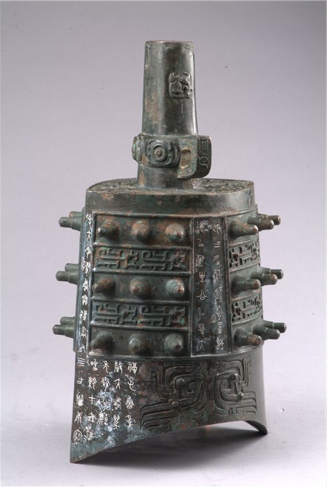 打击乐器。同出五件,大小相次。钟体呈合瓦形,甬上饰四条小龙,舞部饰变形夔纹,钲部以粗阳线为框,中间有铭文,两侧为对称的三条设枚区域与两个篆区,每个枚区设三个长枚,每个篆区饰两条头朝向钲间的鸟喙龙纹。中鼓部饰对称的两个顾首龙纹。秦公钟铭文内容与秦镈相同,甲、乙两件钟合铭130字,内容完整。丙、丁、戊三件合铭109字,可知尚缺一钟。