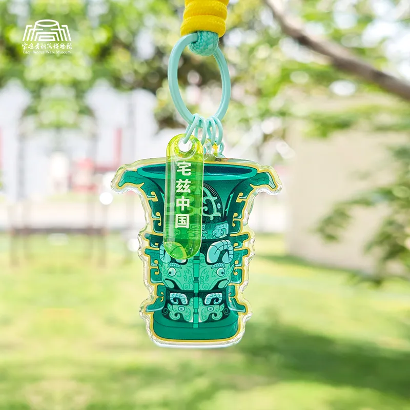 钥匙扣以国宝何尊为原型,完美复刻文物纹样,千年青铜文明化作日常点缀;