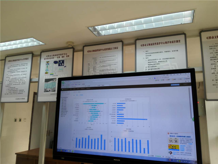 可移动文物预防性保护”项目,建立了 文物保存环境监测站,实现了对陈列展馆、库房两个重点文物保存区域内文物存放环境质量相关指标的24小时不间断实时监测和示范性环境调控;文物保护修复实验室建设”的项目建设完成了总面积约310平方米的文物保护修复实验室,包括金属文物保护室、陶瓷文物保护室、化学实验室、信息采集室、办公资料室、检测室、机械与前期准备室、临时周转室等,配备了文物内部微观特征观察系统、文物颜色测量系统、CL离子测量仪等文物检测和保护修复用的基础设施设备,可以满足文物保护修复工作的需求,为更好的保护修复珍贵文化遗产和进一步开展科技保护研究工作搭建了良好的平台。