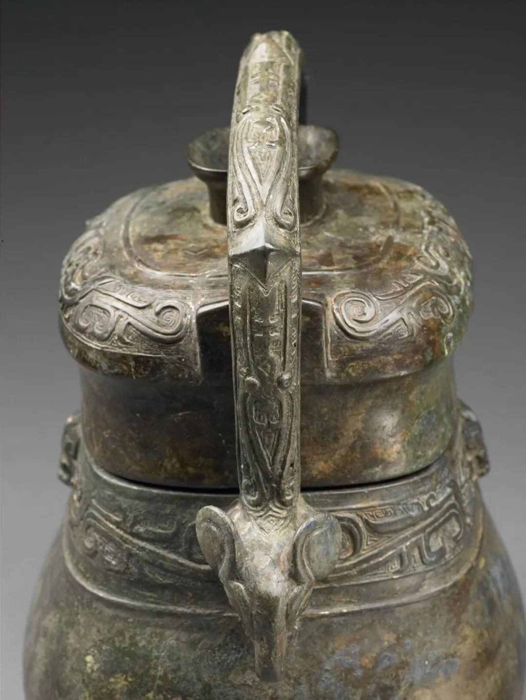 铜卣为酒器,古人用它来盛酒用以祭祀,其器身上的主纹饰多为庄严肃穆的兽面纹或华丽典雅的凤鸟纹,而