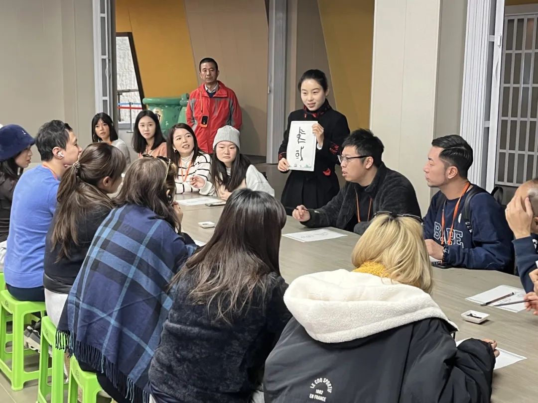 在书写金文的活动现场,教育员向港澳青年介绍了“中国”二字起源与演变的历史,让青年们能够更直观地感受到中国文字的深厚底蕴。他们手握毛笔,用古老的金文展现“中国”二字不同的形态,每一笔每一划都倾注着他们对祖国的热爱。