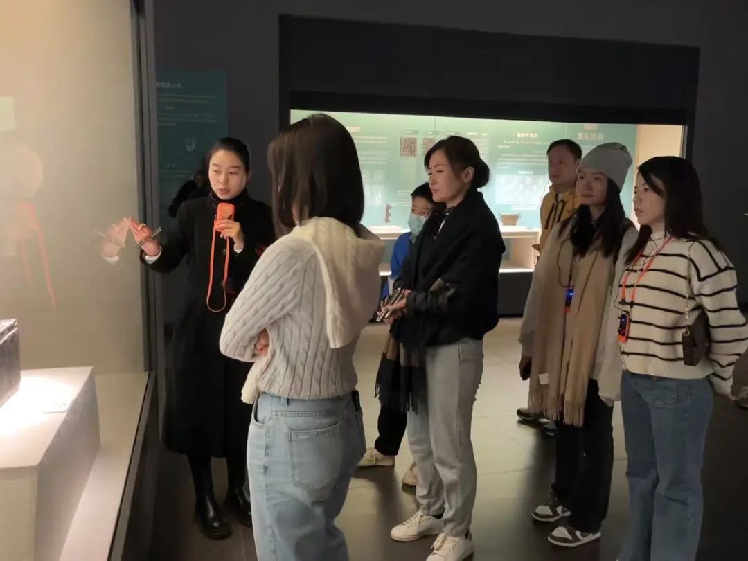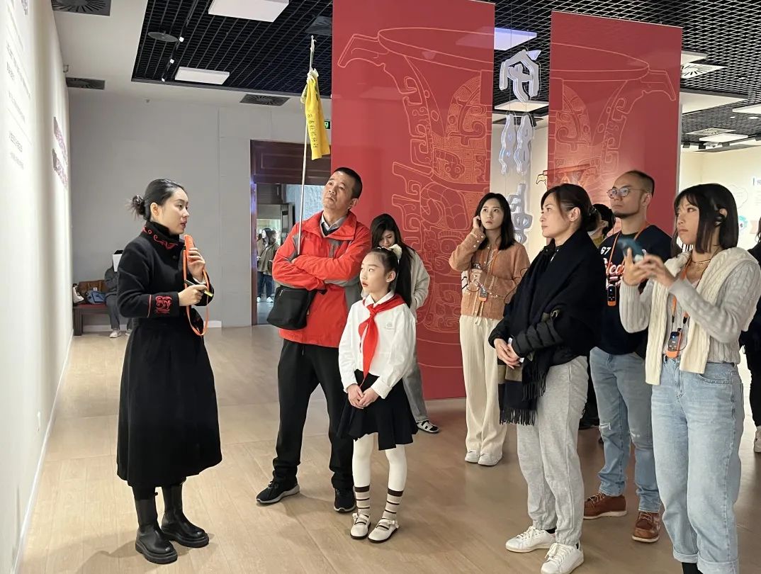 馆内珍藏的青铜器以其精湛的工艺和独特的艺术价值,深深吸引了每一位青年的目光,他们不时驻足,满怀好奇地向讲解员询问关于周秦文化历史的细节,展现出浓厚的兴趣与求知欲。