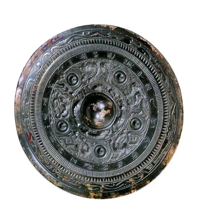 这枚铜镜最为特殊的是上面铸有铭文:“青盖作竟(镜)四夷服/多贺中国人民富/云雨时节五谷熟”。其中,人们耳熟能详的词语“中国人民”也是第一次出现,这枚铜镜也因此被列为国家一级文物。