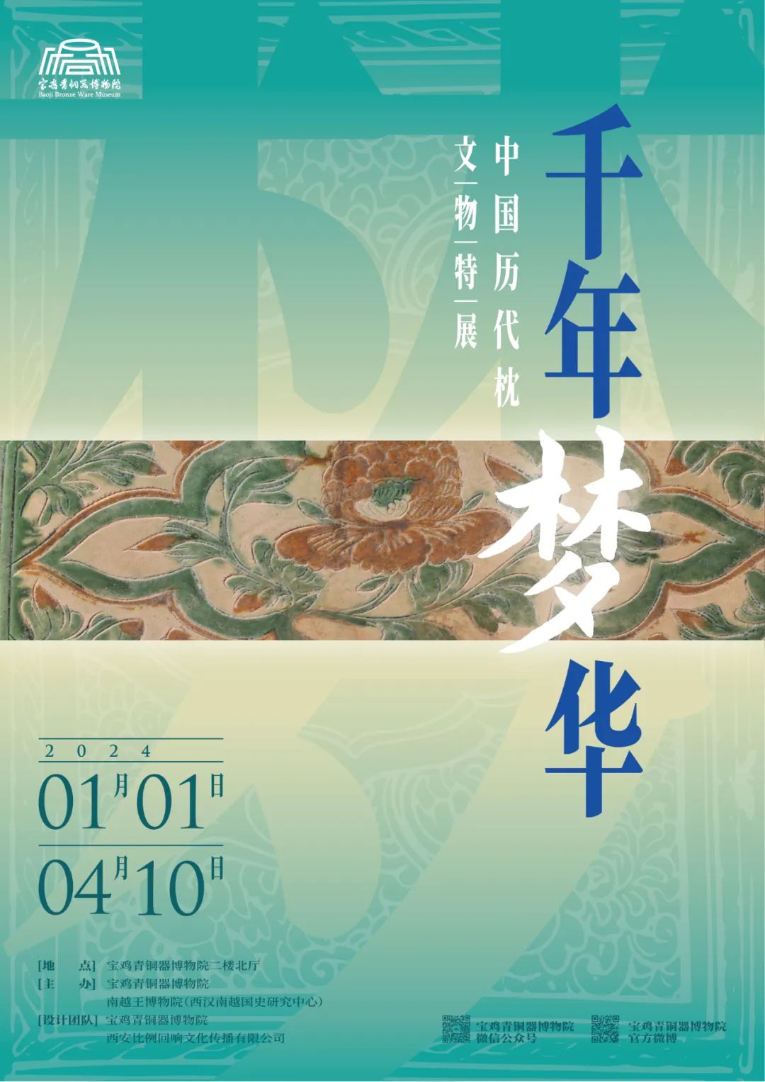 由 联合南越王博物院(西汉南越国史研究中心)举办的“千年梦华——中国历代枕文物特展”,于2024年1月1日至2024年4月10日在 二楼北厅展出。该展览自开展至今,得到了国内外观众、文博行业同仁以及陶瓷器爱好者的好评,也得到了中国日报(英文版)、陕视宝鸡、三秦都市报、宝鸡日报、文物陕西等多家媒体关注报道。本期将邀请您一同回味精彩,开启线上观展之旅。