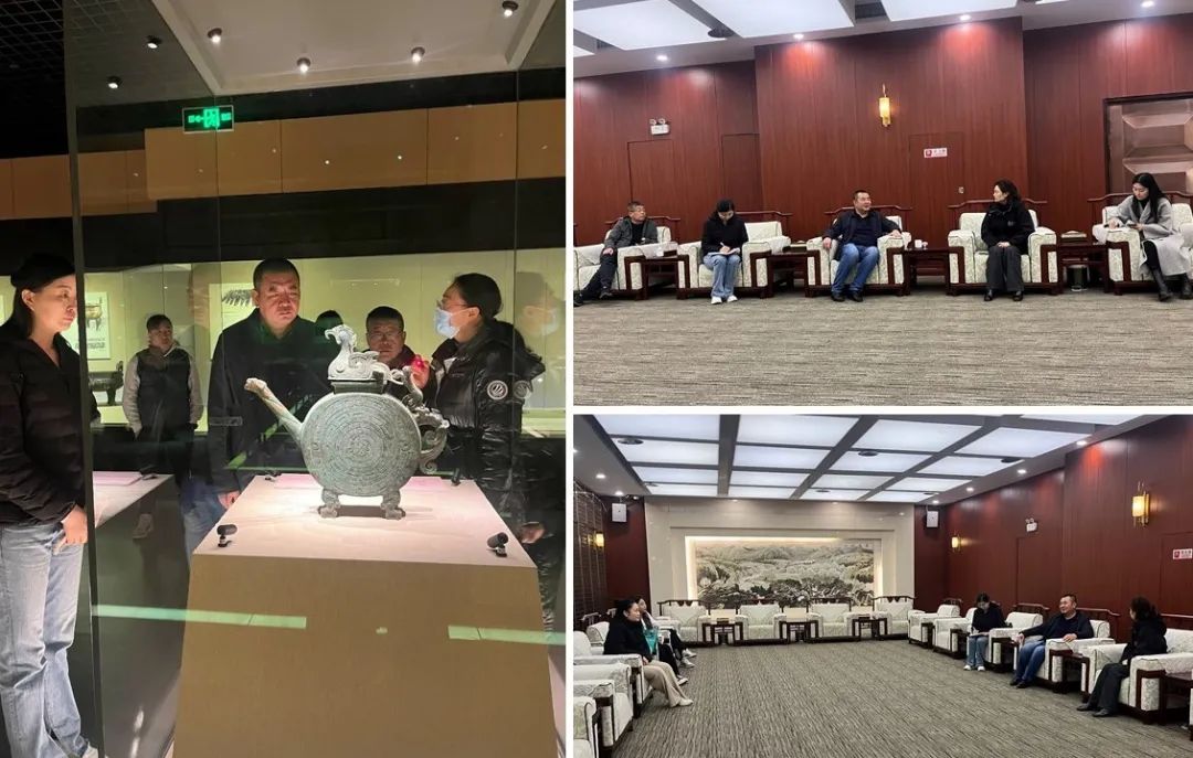 3月20日,阿拉善博物馆馆长张震州一行到 进行考察调研,参观了 基本陈列“青铜铸文明”、常设展览以及临时展览,近距离感受青铜器之乡的文化风采。