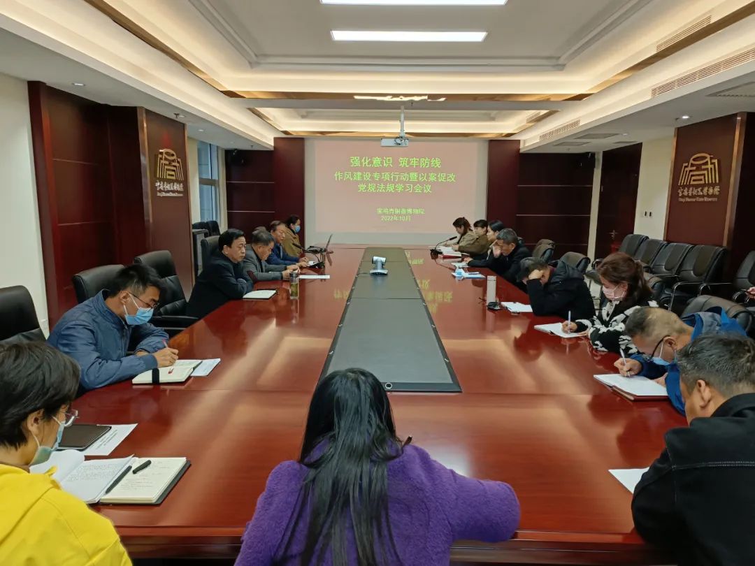 10月12日下午, 组织召开了主题为强化意识、筑牢防线——作风建设专项行动暨以案促改相关党规法规专题学习会议,会议由党支部副书记、副院长康军建同志主持,党支部书记、院长陈亮、副院长李岐及全体干部职工参加学习。