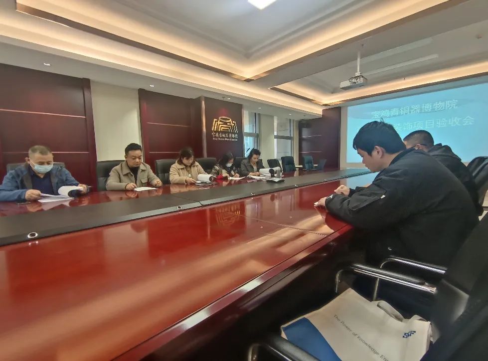 2022年11月22日, 组织省专家库专家组成验收小组,在 召开大厅吊顶装修项目竣工验收会议。会议由 后勤部主任王建军主持,参会人员还有博物院办公室主任和后勤部主要参与人员、施工单位、监理单位主要负责人。